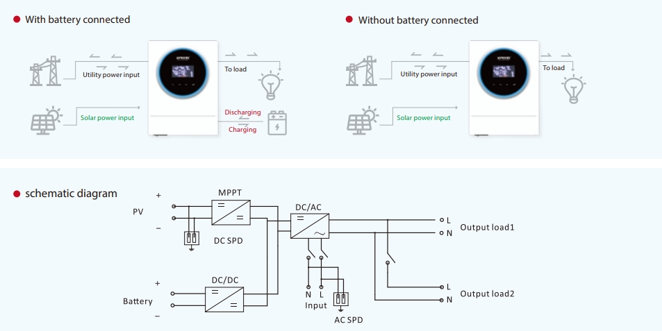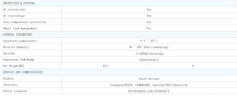 Battery: Battery equalization function extend life cycle Reserved communication port(RS485,CAN)for BMS