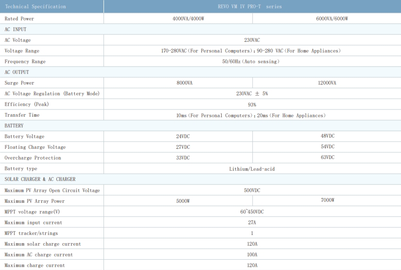 Hybrid On & O Grid: REVO VM IV PRO-T series is suitable for Hybrid On & O Grid applications